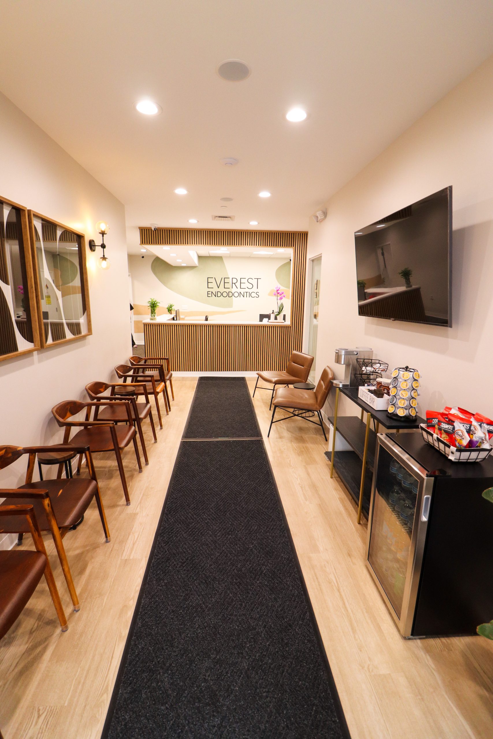 Everest Endodontics was a complete interior renovation project that offered unique challenges due to the multi-tenant building. Our team strived to ensure little-to-no impact to operations of the neighboring practices. Dr. Sarmad Askar’s vision involved a high use of glass for an elegant and modern design that was brought to life with a strong attention to detail and finishes.